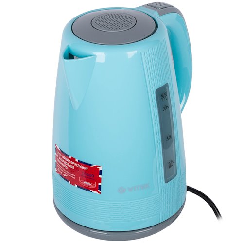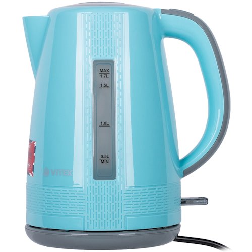 Электрочайник VITEK VT-7001 оснащен прочным пластиковым корпусом голубого цвета. Эргономичная подставка с возможностью вращения на 360 градусов обеспечивает легкое пользование кухонным прибором и его надежную устойчивость. Корпус оснащен индикатором уровня воды и декорирован текстурированным узором. Оригинальное цветовое решение делает чайник ярким и функциональным предметом современного кухонного интерьера.
