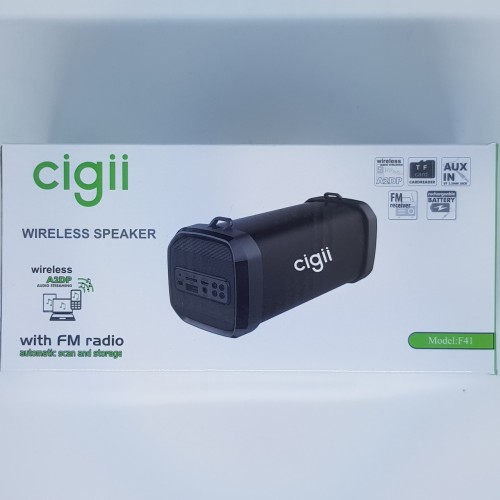 Беспроводная портативная блютуз акустическая система Cigii F41 гарантирует мощный стерео-звук и источник энергии в одном устройстве. Аккумулятор высокой емкости на 1500 мАч гарантирует бесперебойную работу в течение 6 часов и позволяет поключать  USB устройства.  Подключайте дополнительные колонки по беспроводному соединению для еще более мощного звука.
